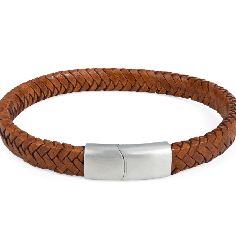 Robuuste heren armband zorgvuldig gevlochten van bruin leer. Laat op de sluiting een naam of initialen graveren voor een betekenisvol cadeau!