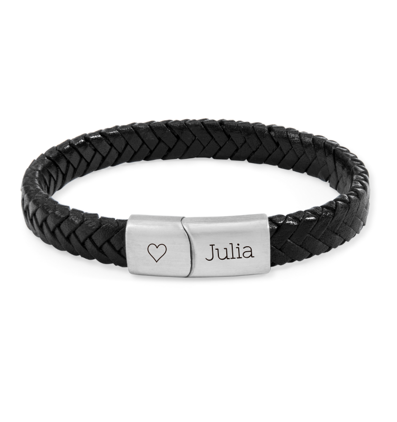 Gevlochten Armband Leer Heren met Gravure - Zwart
