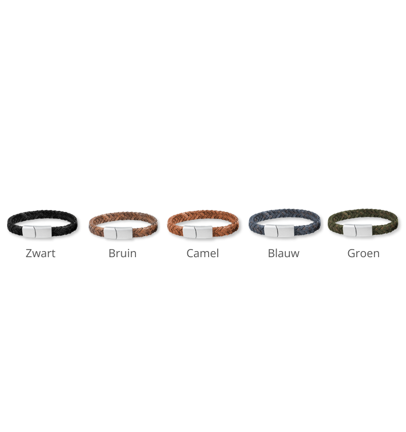 Gevlochten leren herenarmband met karakter en emotie. Laat de sluiting graveren met het handschrift van je dierbaren en draag een warme herinnering altijd dicht bij je.