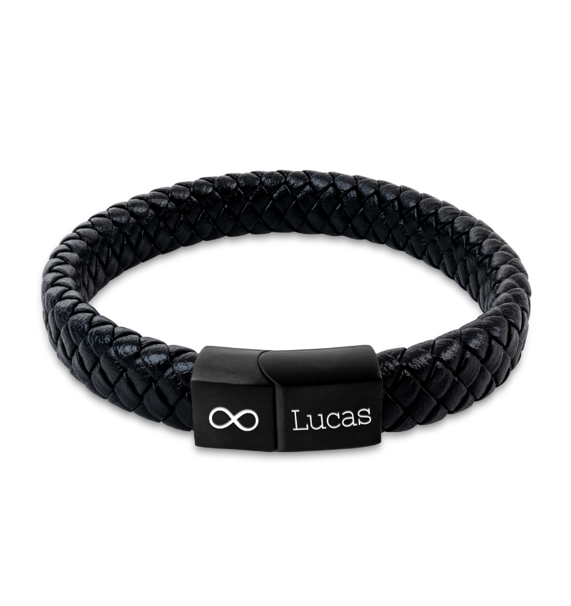 Heren Armband Leer Met Gravure 'Harmony' - Zwart