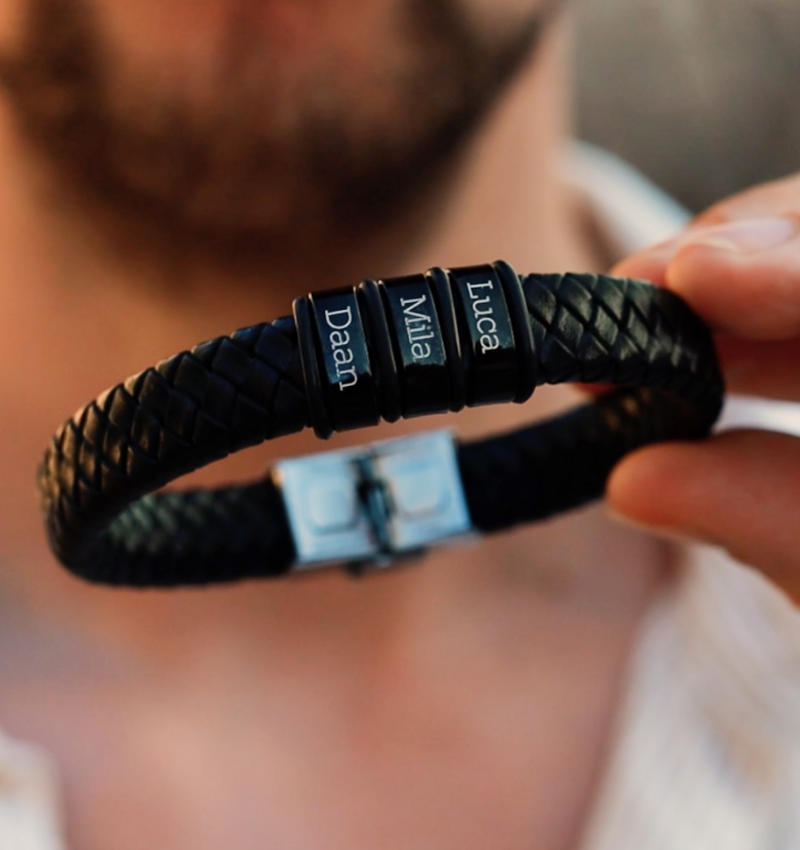 Ontwerp je eigen verhaal met de Rock My World armband voor heren. De zwarte graveerbedel vertelt een stukje van wie jij bent. De leren armband is zo niet alleen een stijlvol accessoire, maar heeft ook een persoonlijke betekenis.