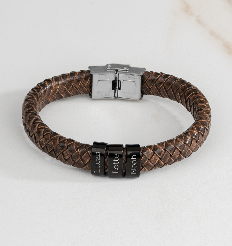 Of je nu een casual outfit draagt of je klaarmaakt voor een speciale gelegenheid, de Rock My World herenarmband van écht leer met meerdere bedels voegt een stoere en persoonlijke touch toe aan je look.