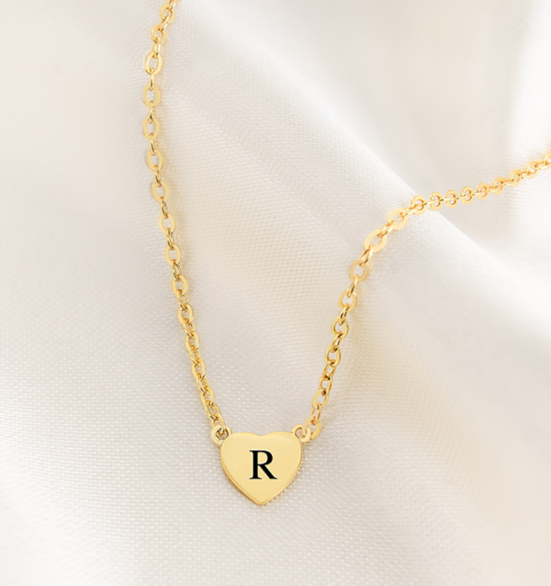 Minimalistisch kettinkje met klein hartje. In het hartje graveren we een letter naar keuze!