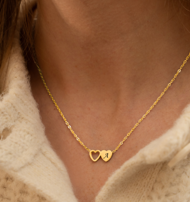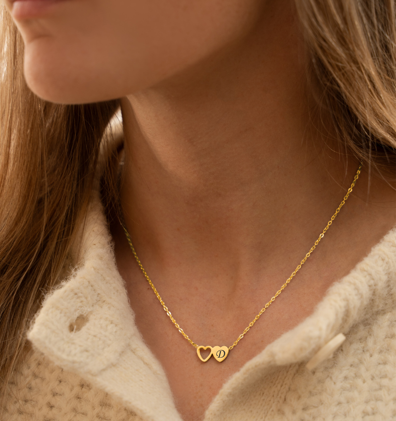 De ketting Two Hearts van stainless steel is een lief sieraad dat je extra persoonlijk maakt met één initiaal.