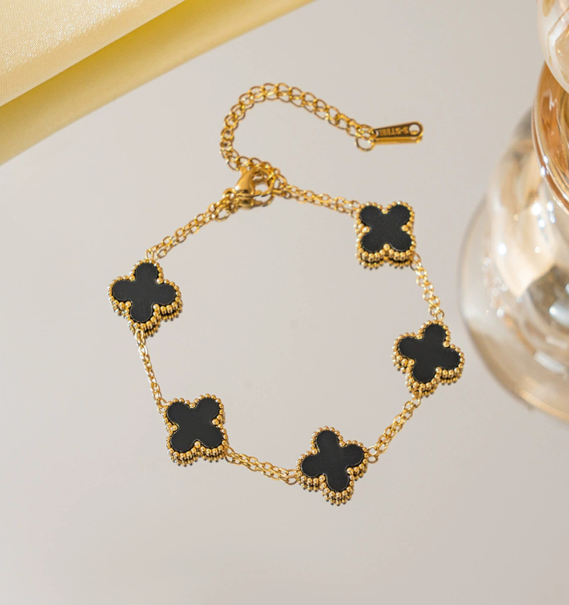 Kinderarmband Klaver Zwart | Stainless Steel - Goud