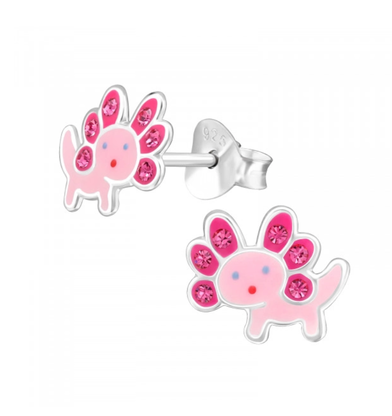 Stoere kinderoorbellen in de vorm van een salamander, versierd met glinsterende kristallen.