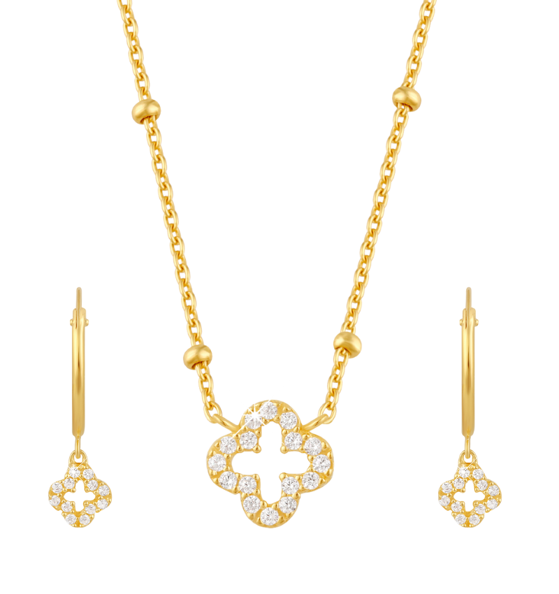 Sparkle in stijl! de klaver sieraden set met zirkonia kristallen maakt elke outfit compleet.