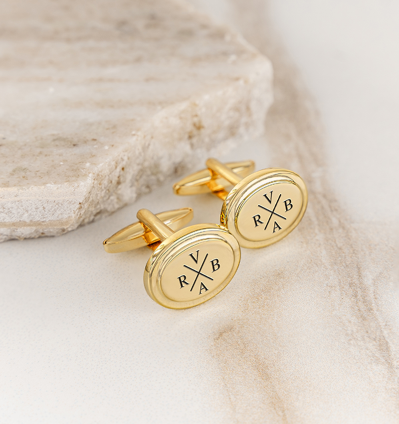 Roestvrijstalen Manchetknopen 'Rond Portret' met Gravure - Goud