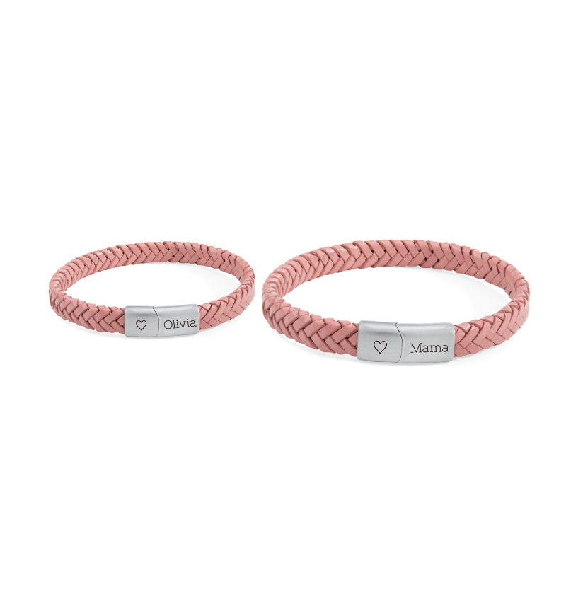 Moeder & Dochter Armbanden Gevlochten Leer | met Gravure - Leer