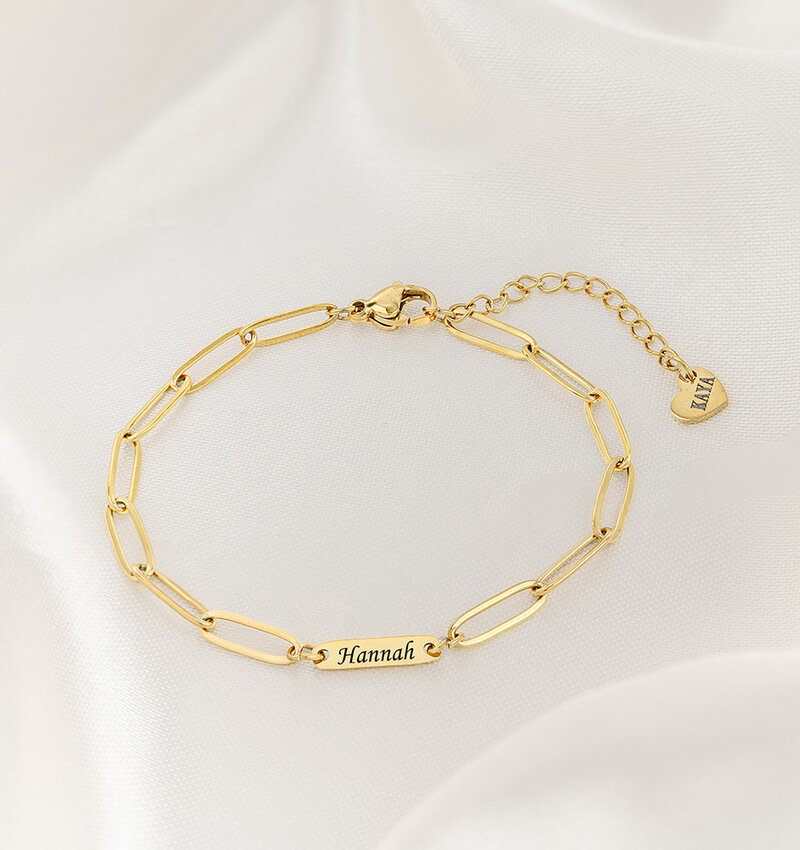 Kinderarmband 'Paperclip' met gravure - Zilver