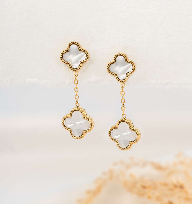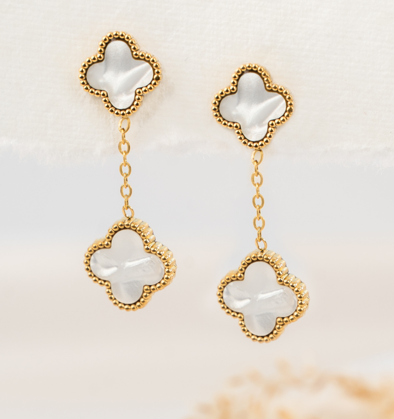 Een paar klaver oorbellen als mijn dagelijkse dosis geluk, stijlvol en sprankelend tegelijk.
