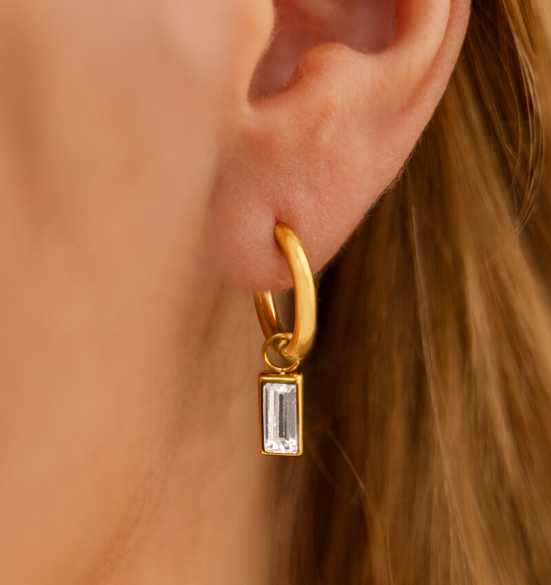 Deze oorringen met steentje zijn als kleine sterren die je oren omarmen, een speelse toevoeging aan je dagelijkse look!