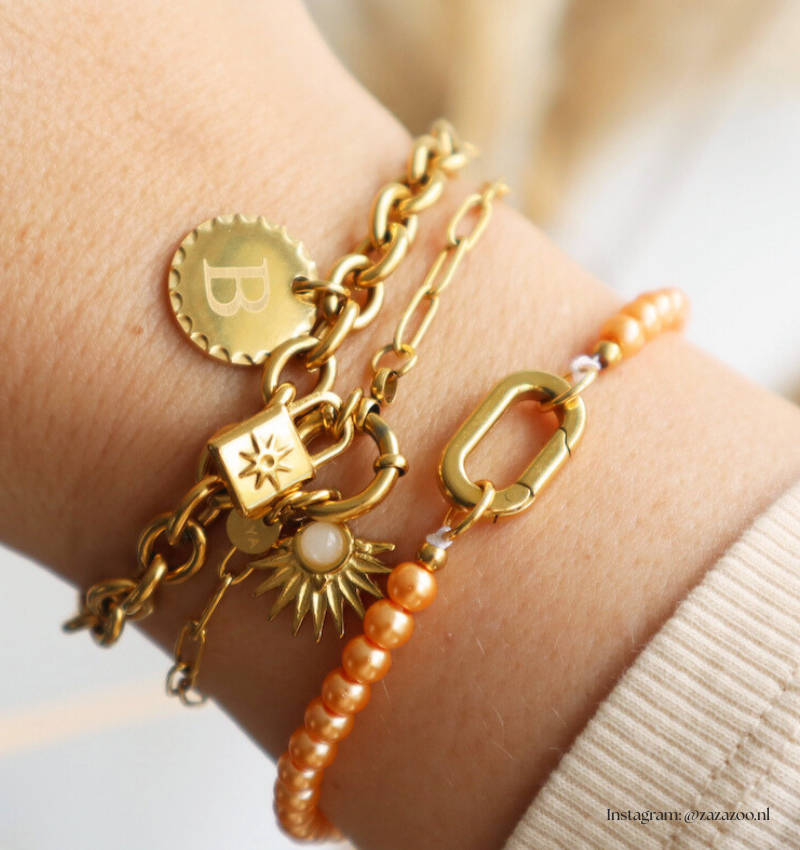 Oranje Armbanden Glasparel Set ‘Festival Pearl’ | Stainless Steel - Goud