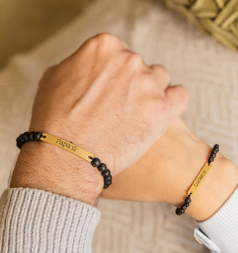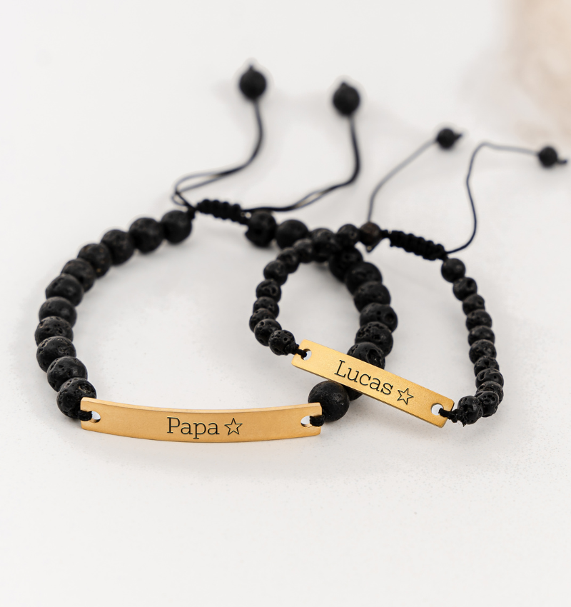 Stoere lavastenen armbanden set voor jou en je mini om samen de wereld te ontdekken!