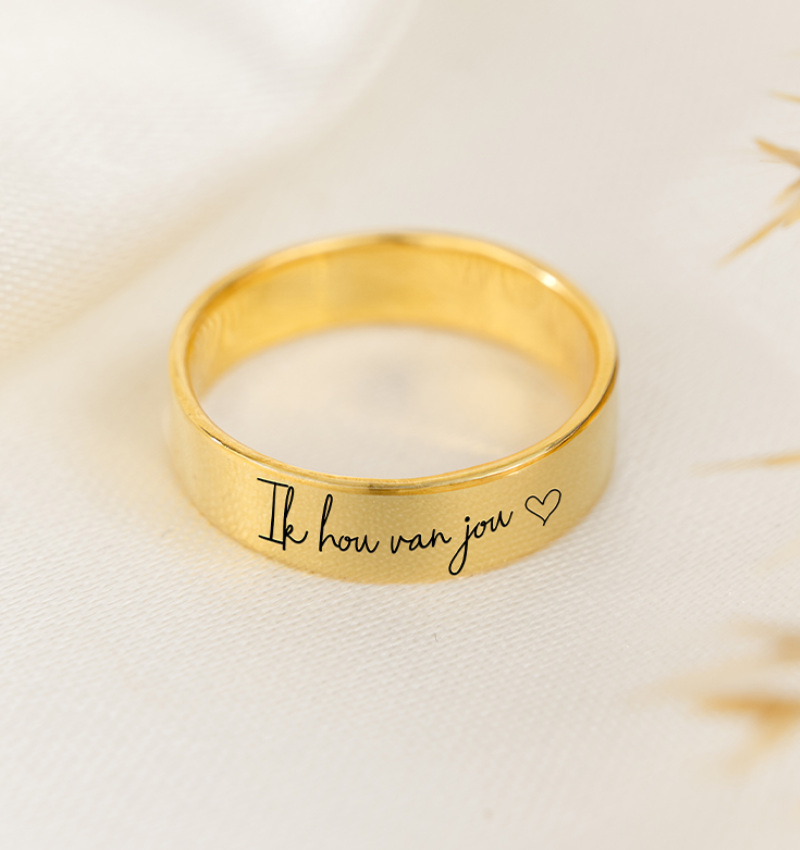 Maak je ring extra persoonlijk met een handschrift gravure! Draag je dierbaren altijd dichtbij.
