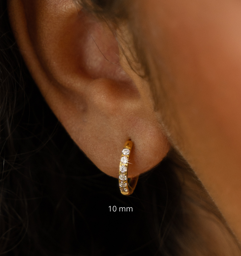 Shiny oorringen met steentjes 10mm | Stainless Steel Goud - Goud