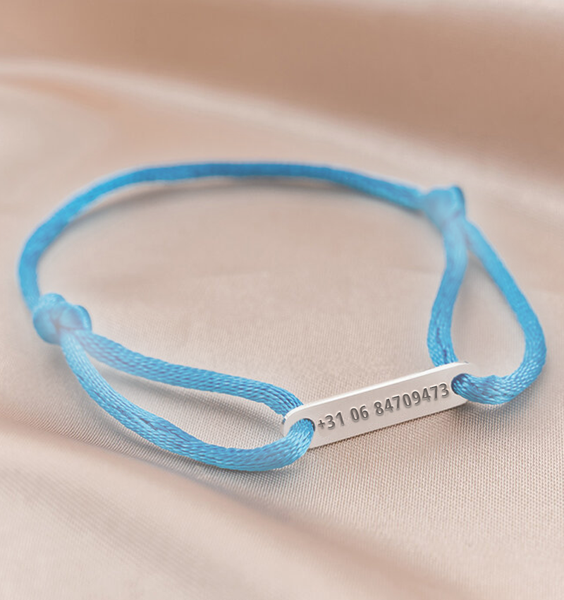 SOS Kinderarmbandje met Telefoonnummer | Baby Blauw | Stainless Steel - Zilver
