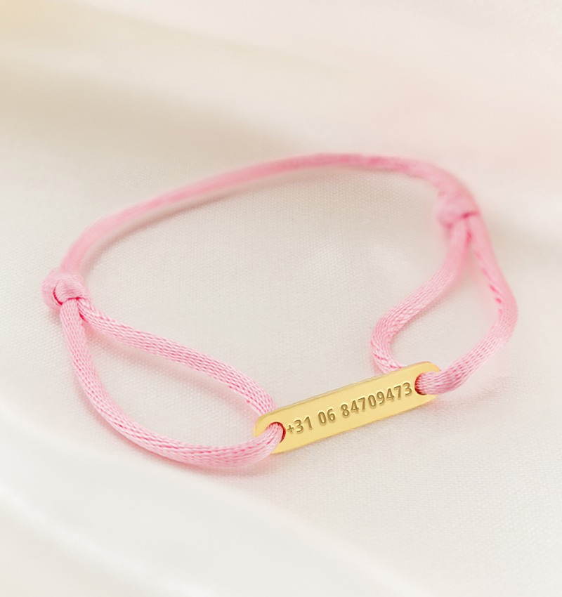 S.O.S. Kinderarmbandje met Telefoonnummer | Licht Roze | Stainless Steel - Goud