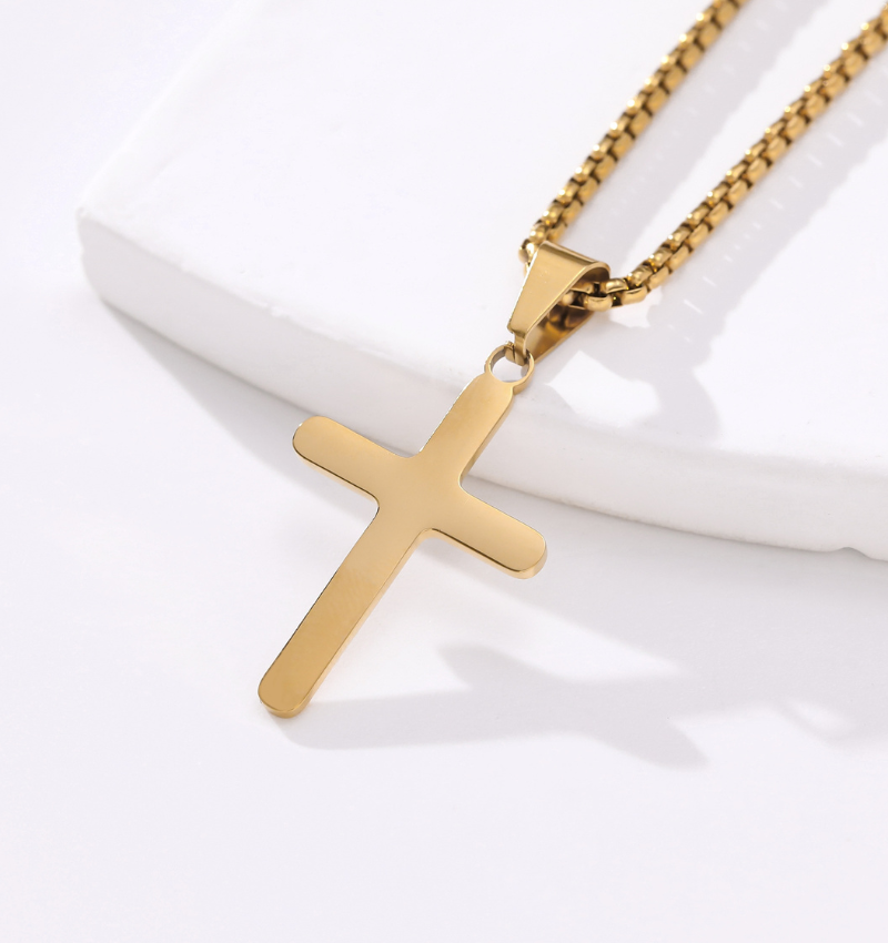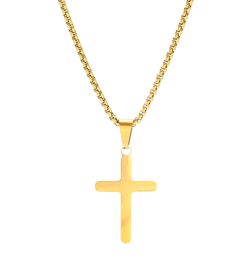 Mooie ketting met een gouden stalen kruis hanger. Hoogwaardig afgewerkt in roestvrij staal, verkleurt niet! Een krachtige ketting die je overal bij kan dragen.