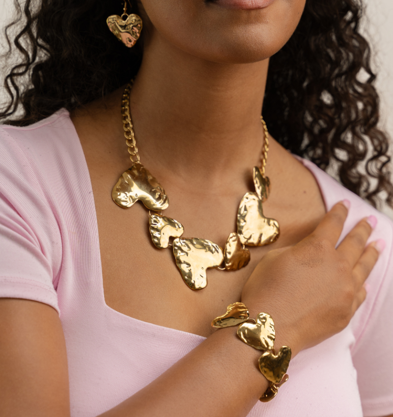 3-delige Statement Sieraden Set 'Heart Attack' - Goud