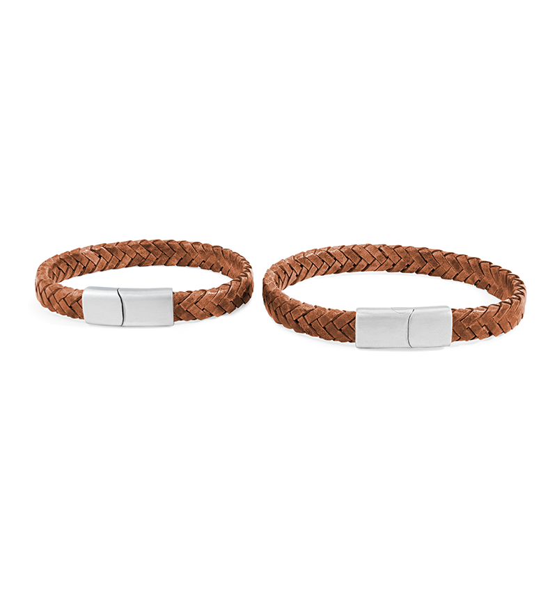 Twee armbanden, één band. Een robuuste set van zorgvuldig gevlochten leer. Voor vader en zoon die hun bijzondere verbondenheid met trots dragen.