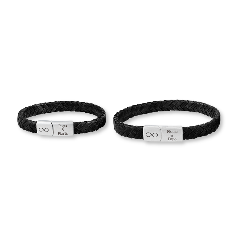 Vader & Zoon Armbanden met Gravure Gevlochten Leer - Zwart