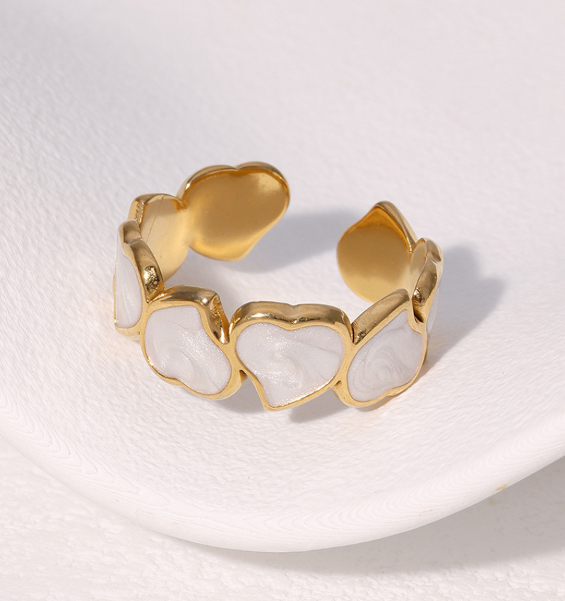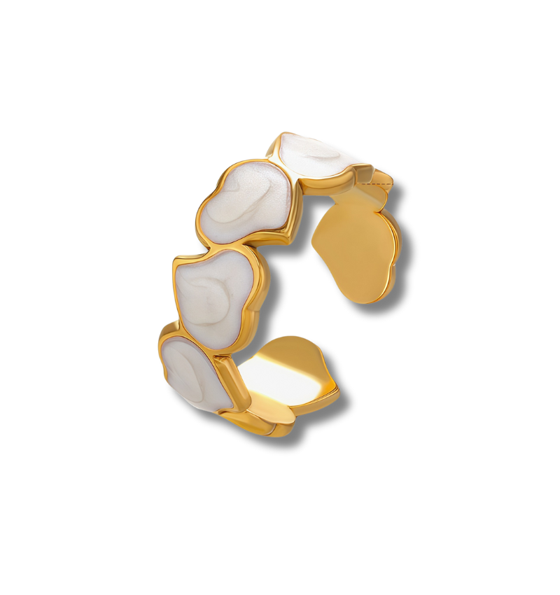 Verstelbare Ring Hartjes met Parelmoer | Stainless Steel - Goud