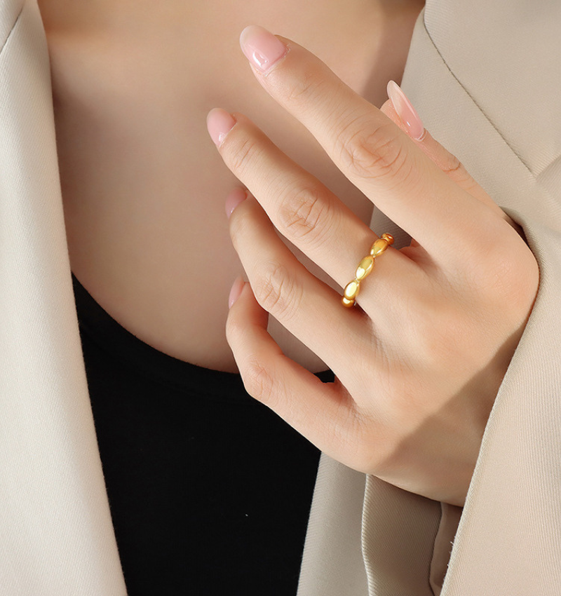 Verstelbare Ring met Ovalen Patronen | Stainless Steel - Goud