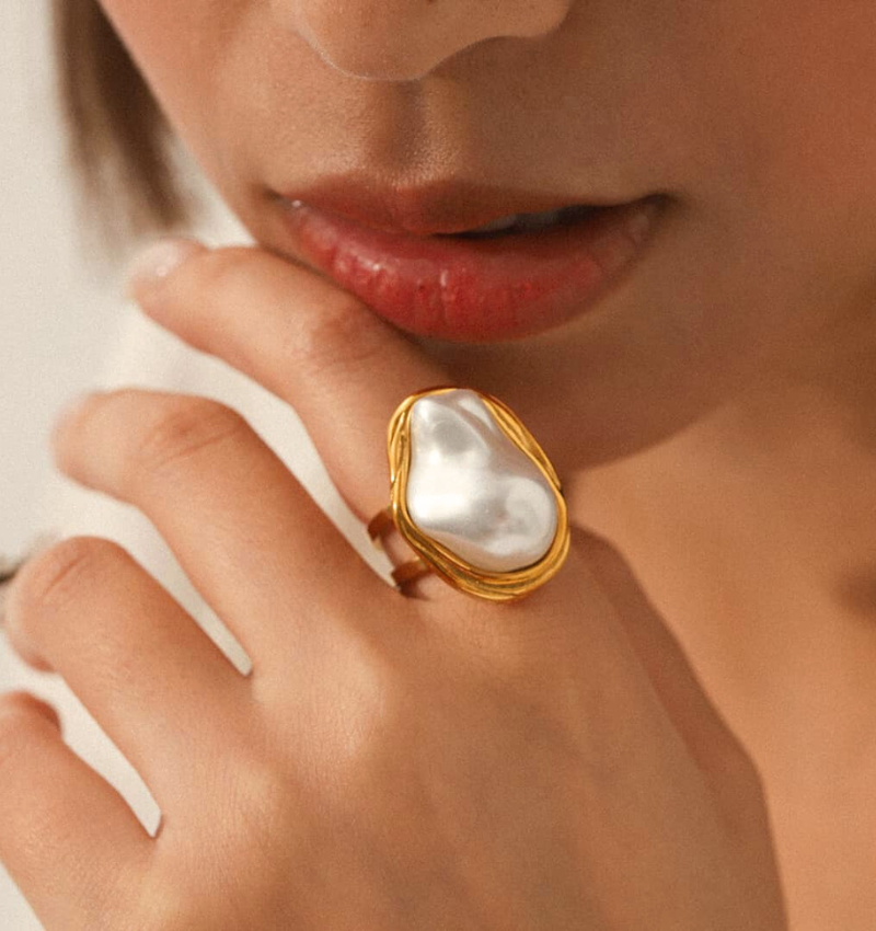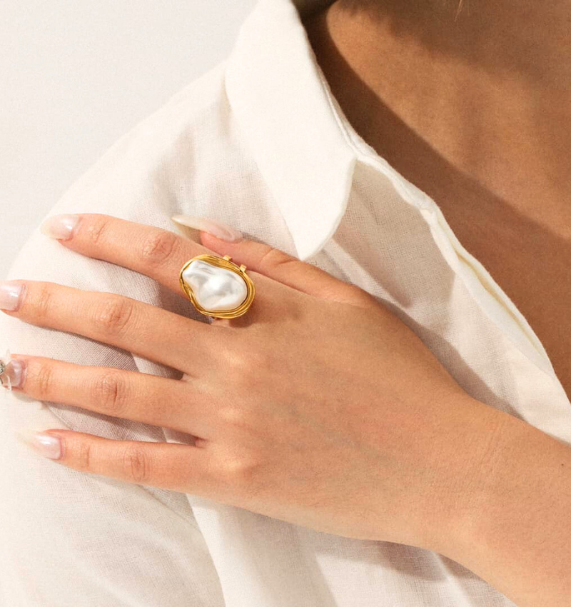 Verstelbare Statement Ring met Parel | Stainless Steel - Goud