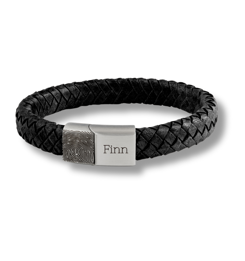 Armband Heren met Vingerafdruk en Naam Leer - Zwart