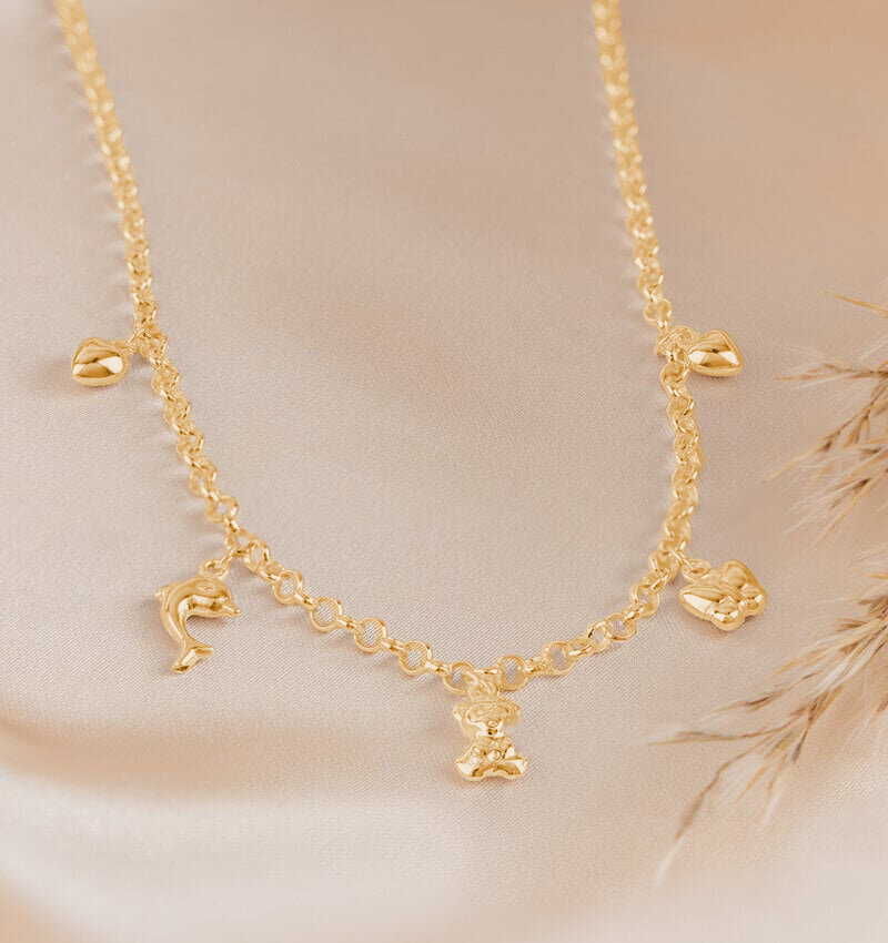 Zilveren Bedelketting met 5 bedeltjes - 925 Sterling Zilver