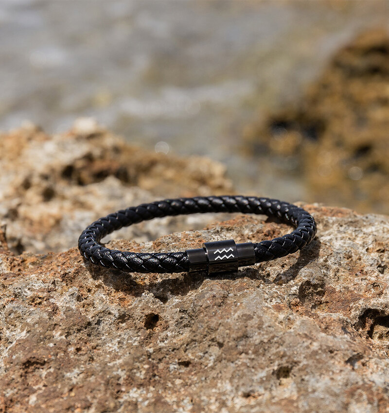 Leren Herenarmband met Sterrenbeeld - Zwart